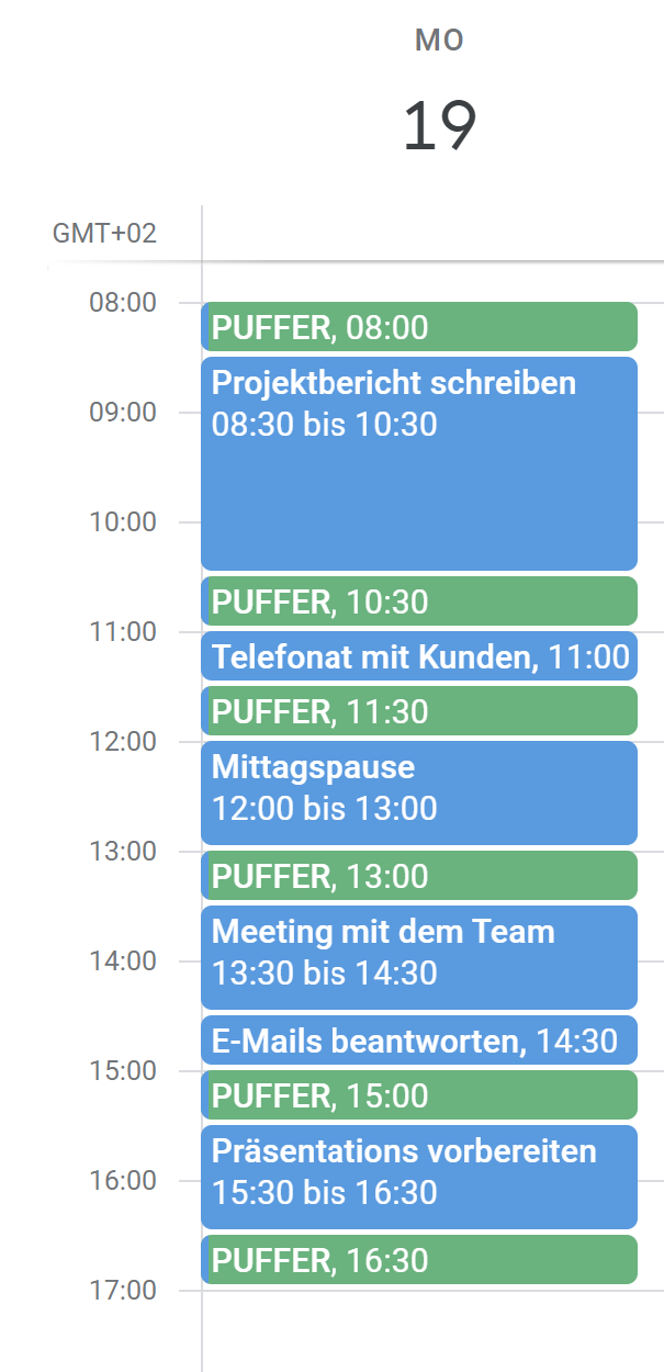 - Flexibilität: Pufferzeiten ermöglichen es, auf unvorhergesehene Ereignisse flexibel zu reagieren und in stressigen Phasen gelassen zu bleiben.